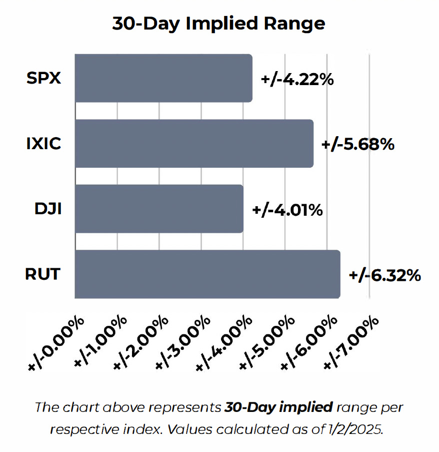 The implied 30-Day Range for all respective indices are included on the following pages for visual representation.