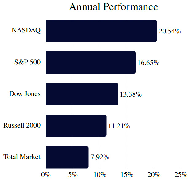 The Nasdaq returned above average gains at 20.54% for 2025, significantly stronger than the 10-year average of 14.3%, as well as higher than its 20-year average of 10.8%.