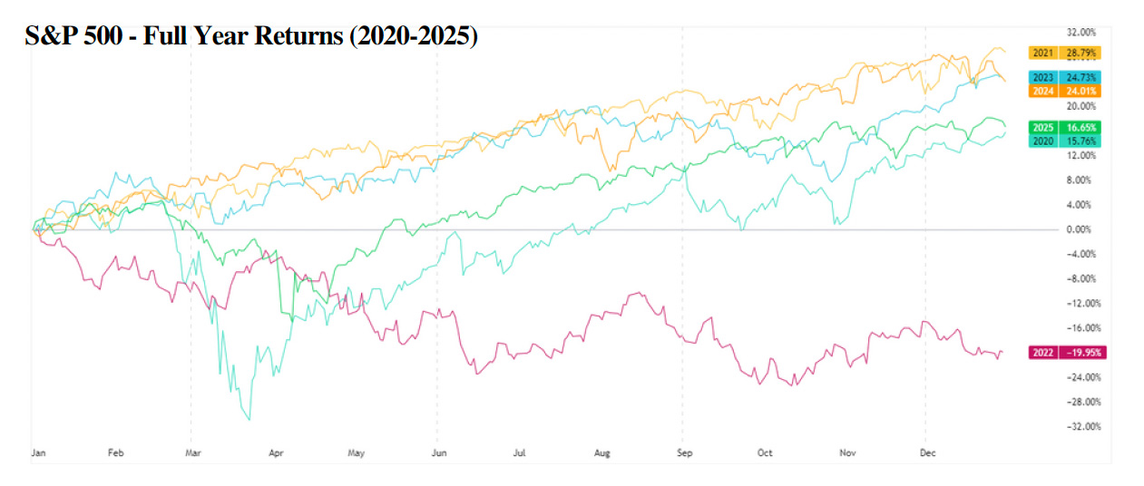 While we can see that 2025 as a whole, compared to 2024, had generally higher average volatility, market resilience driven by earnings growth, integration of artificial intelligence, and corporate profits justified a continued bull cycle. Looking forward in 2026, while the geopolitical landscape may present some uncertainties and unforeseen spikes in volatility in U.S. equities, expectations of strong growth and earnings would support these valuations.