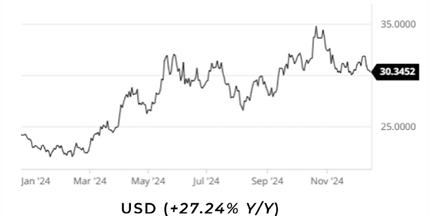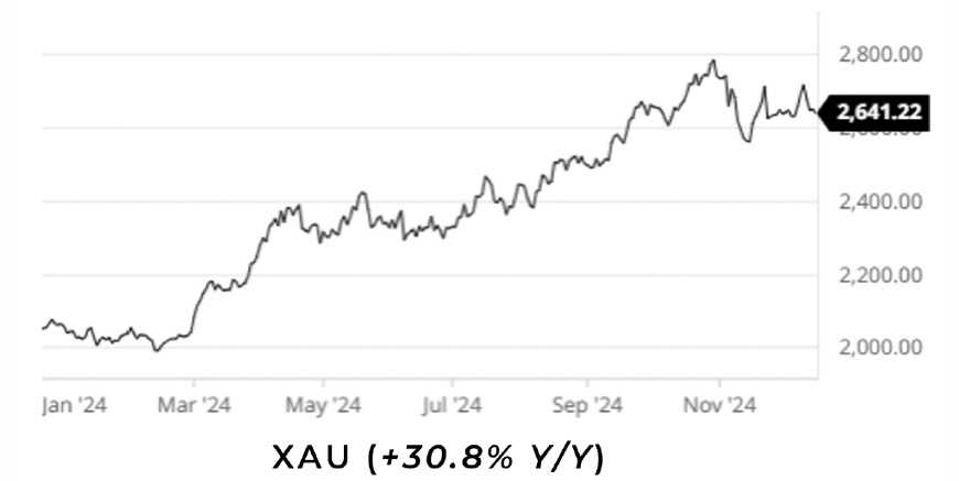 Gold prices are likely to remain strong in 2025, driven by several factors. Inflation hedges as investors seek gold as a safe haven, geopolitical tensions, ongoing global uncertainties, and with central banks boosting their gold reserves, we see gold rising above $3,000 per ounce in 2025.