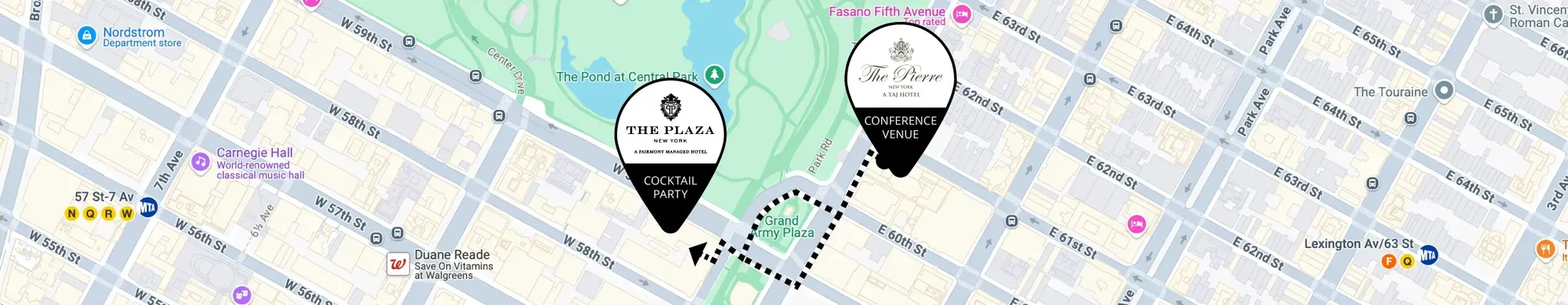 Penn Station (Amtrak, Long Island Rail Road, NJ Transit): 1.4 miles away (approximately a 5-10 minute taxi/ride-share ride or a 20-minute subway ride via the 1, 2, or 3 trains to 59th Street – Columbus Circle, then transfer to the N, Q, R, or W trains to 59th Street – Lexington Avenue)